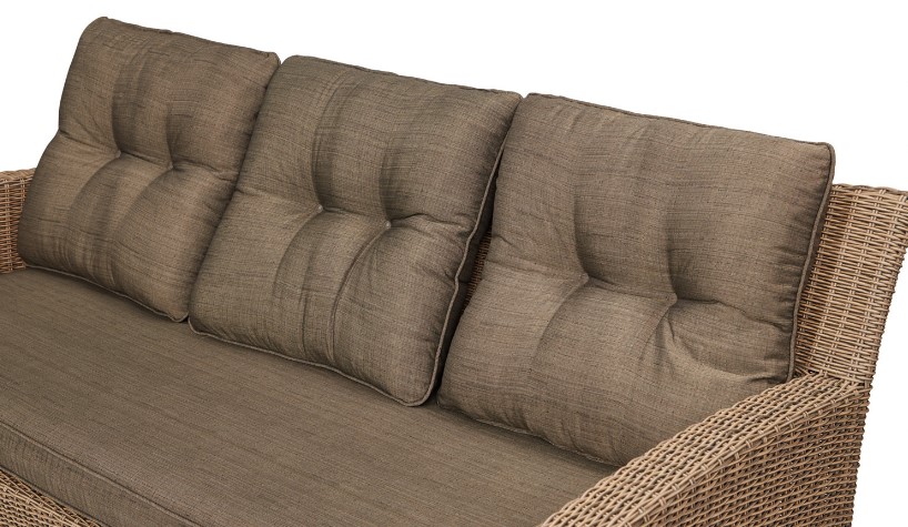 Мы предлагаем вам приобрести подушки, предназначенные для набора садовой мебели, изготовлены они из такого материала, как полиэстер и имеют коричневый цвет. В комплекте находится подушка для сидения размером 185 на 62 см и толщиной 8 см, две подушки для сидения размером 62 на 56 см и толщиной 8 см. Также в комплекте есть две подушки для спины и размер 57 на 57 см и толщиной 6 см, а также три подушки для спины размером 57 на 63 см и толщиной 6 см.