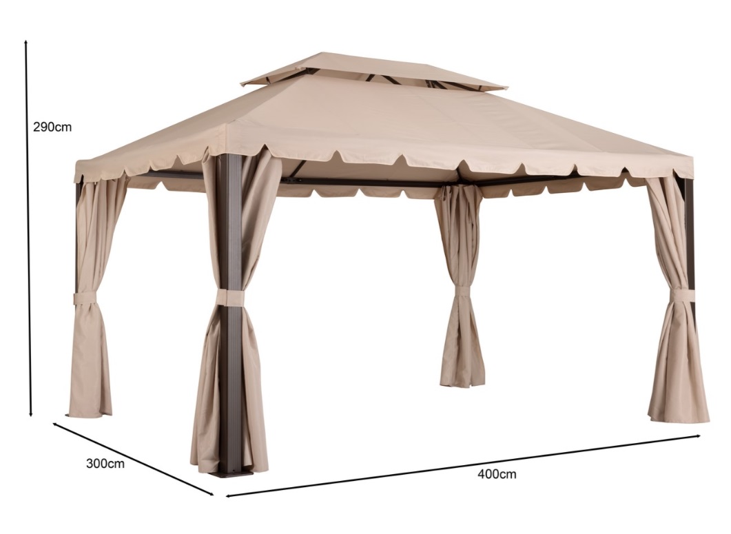 В комплект из полиэстера Oxford с полиуретановым покрытием входит тент-крыша и плотные шторы; подойдёт для размеров шатра 3м х4м.