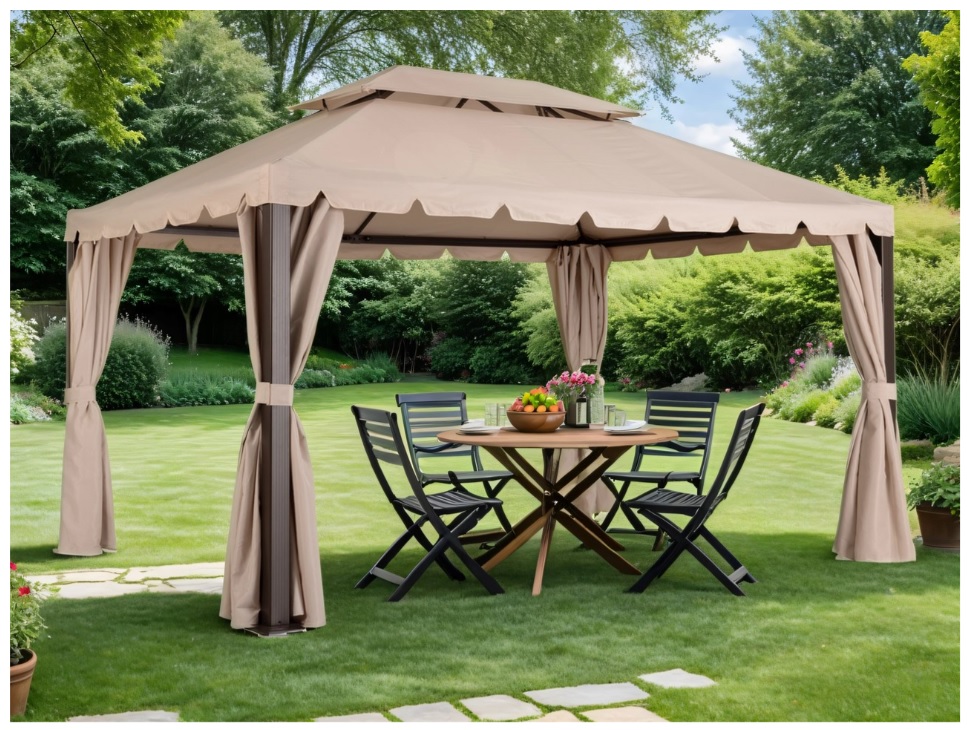 Текстильный комплект Павильон Veoms 3 x 4м - это надежное решение для создания комфортной зоны на открытом воздухе. Конструкция состоит из прочного тента, который крепится к шатру, и набора штор, которые обеспечивают дополнительную защиту от солнца, дождя и ветра. Крыша-тент и шторы выполнены из качественных материалов, которые обладают высокой устойчивостью к внешним воздействиям. Они легко устанавливаются и быстро снимаются, что позволяет быстро реагировать на изменения погодных условий. Благодаря своей простоте и удобству, комплект на садовый шатер станет идеальным выбором для пикников, барбекю и других мероприятий на природе.