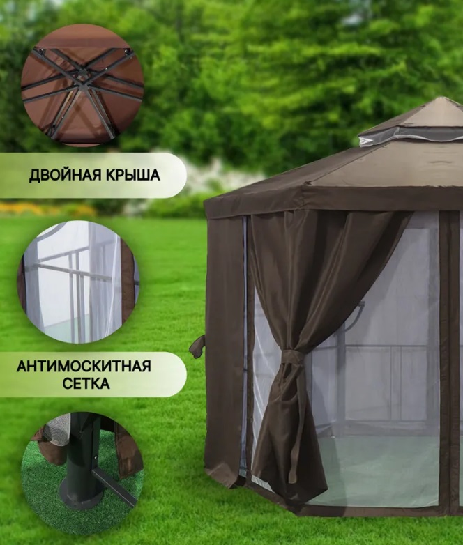Краткое описание «Комплект для шатра ГЕКСАГОН: тент-крыша + антимоскитные сетки»