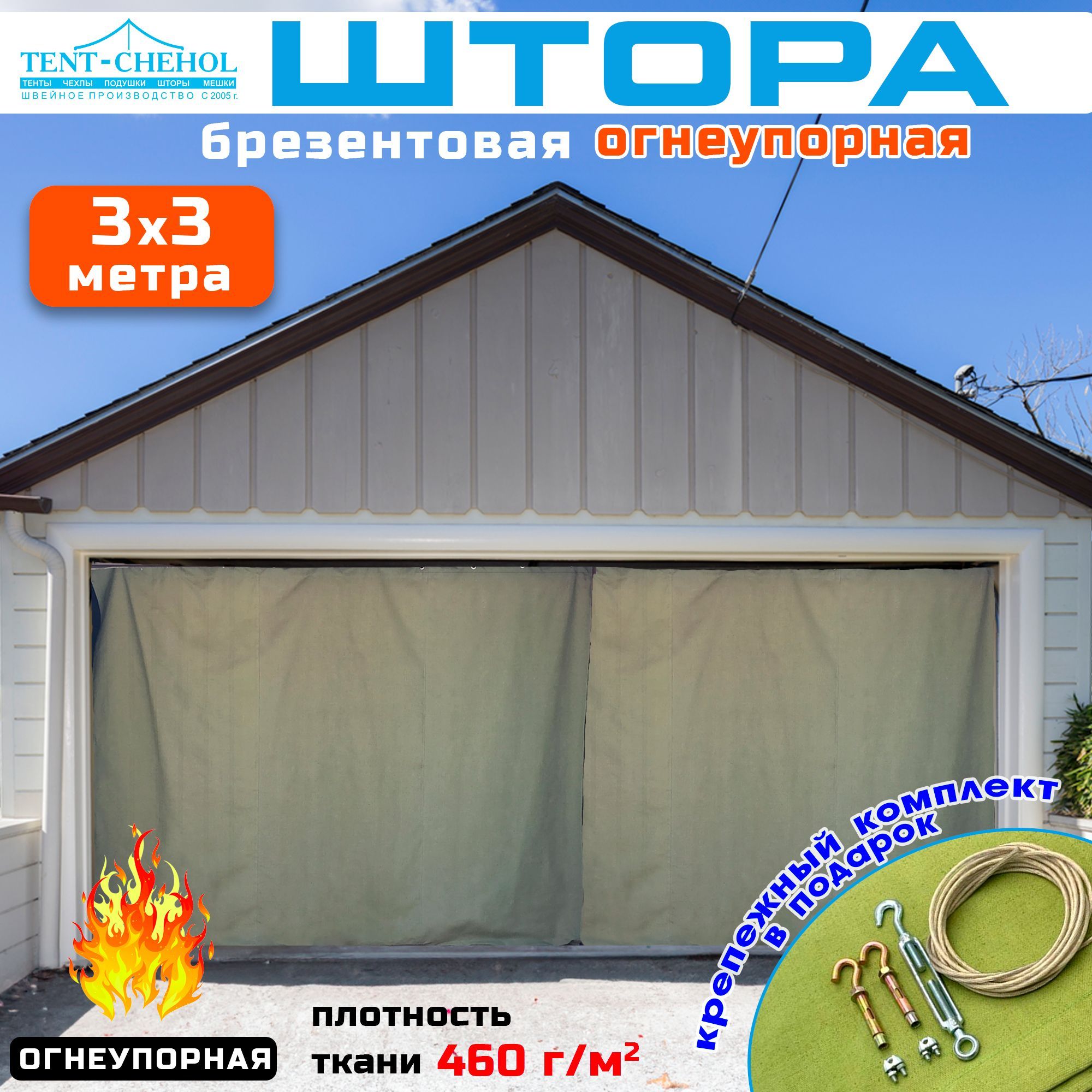 Брезентовая штора в гараж, огнеупорная, высота 300 см, ширина 300 см