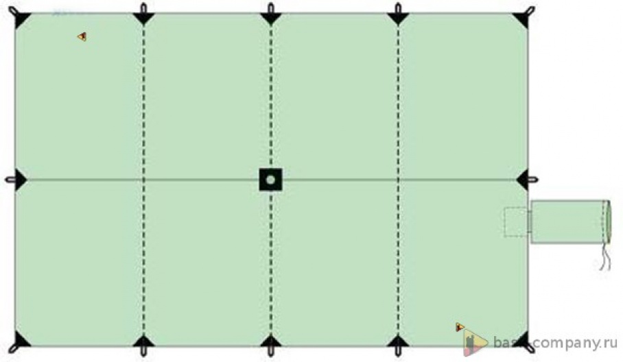 Имеет полный комплект шнуров со светоотражающим свойством. Упаковочный мешок встроен в тент.
